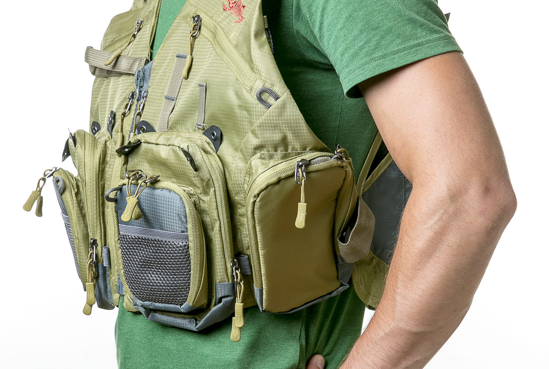 Пошит из современного синтетического материала мембранного типа. Отличные вентилируемые свойства. Выпускается в 2 универсальных размерах, и подгоняется стяжками под конкретный размер. Может носиться как в жаркую, так и в холодную погоду. 17 внешних и внутренних карманов. Карманы имеют тщательно продуманное расположение, специальные отверстия для стока воды. Жилет оборудован системой подвесок, петель и застежек для фиксации рыболовных аксессуаров. Незаменимая вещь для комфортной рыбалки.
